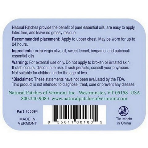 Natural Patches of Vermont, Vermont Sweet Fennel Appetite Suppressant Formula Essential Oil Patch, 1 Count